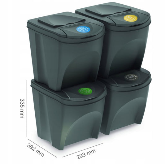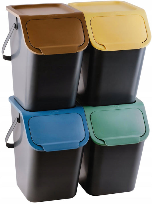 Kildesorteringssett 4 x 25L Stablebare Avfallsbøtter Med Fargemerking