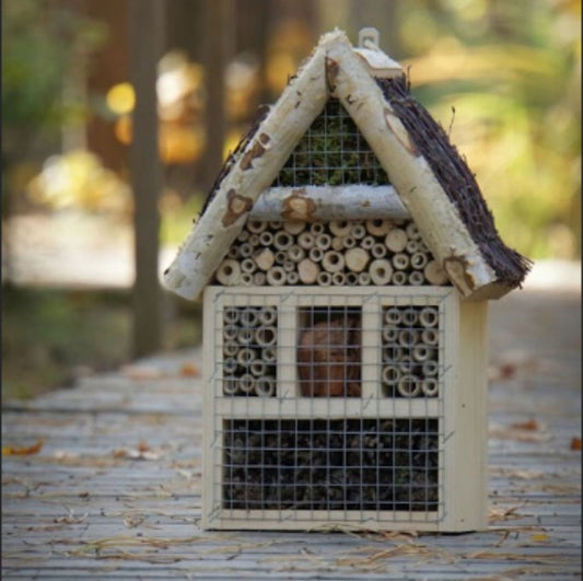 Insektshotell I Naturlig Tre Med Tak I Kvistverk 26x9x36 cm