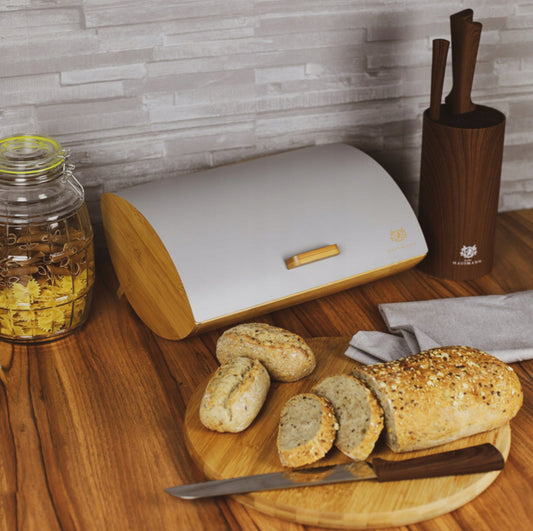 Stor Hvit Brødboks I Bambus Og Stål – Karl Hausmann