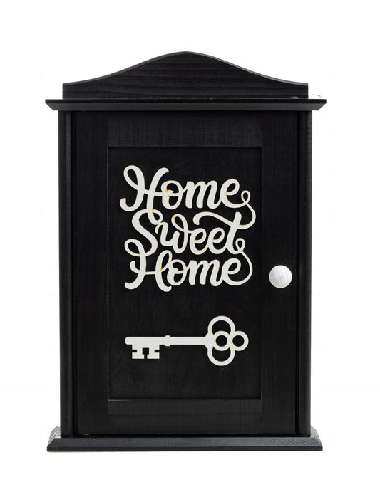 Sort Vegghengt Nøkkelskap I Tre Med 6 Kroker