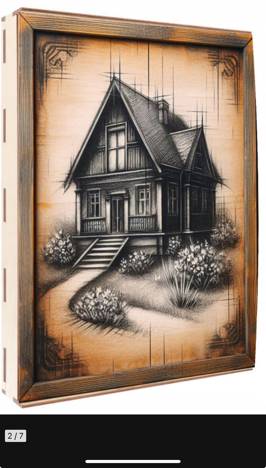 Nøkkelskap i Tre med 7 Kroker og Låsedør – Husmotiv