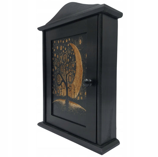 Svart Tre Nøkkelskap Med Gravert Måne Og Stjernemotiv