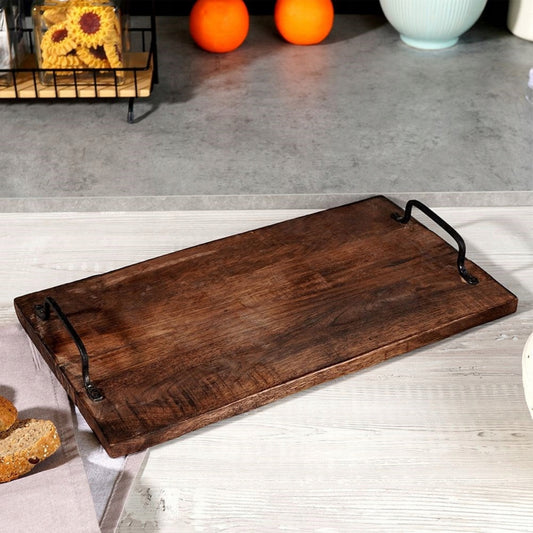 Serveringsbrett I Mangotre Med Jernhåndtak 40x21cm Rustikk Stil