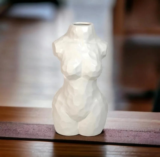 Skulpturell Vase i Hvit og Svart – Moderne Kroppsform 30 cm