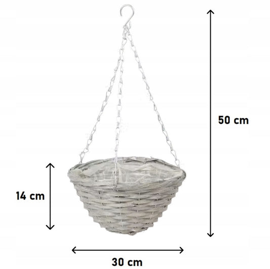 Hengende Blomsterkurv I Flettet Rotting Grå 30cm