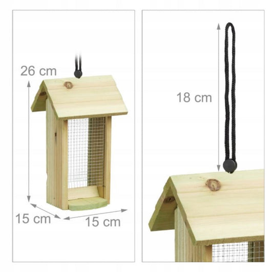 Hengende Fuglemater I Tre Med Tak – 26 cm