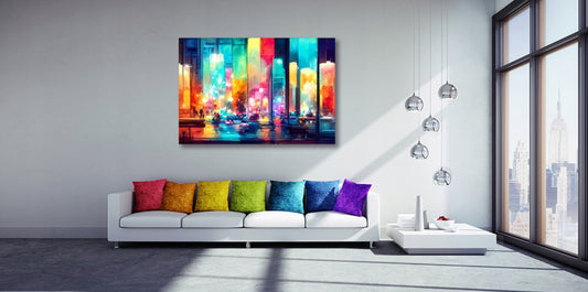 Abstrakt Lerretsbilde Fargerik By 120x80 cm