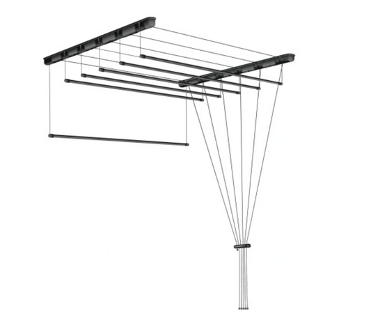 SORT TAKMONTERT TØRKESTATIV MED FLEKSIBLE SNORER - PRAKTISK OG STILFULL TØRKELØSNING