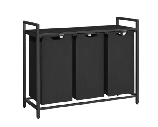 LOFT-STIL TRIPPEL ROM SKITTENTØYSKURV I SORT PULVERLAKKERT STÅL - 114L KAPASITET