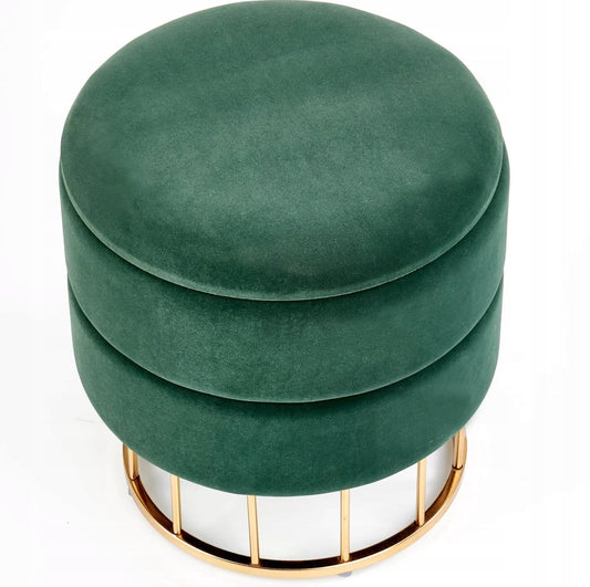 Puff Med Oppbevaring I Velur Og Gullstativ – Grønn/Grå