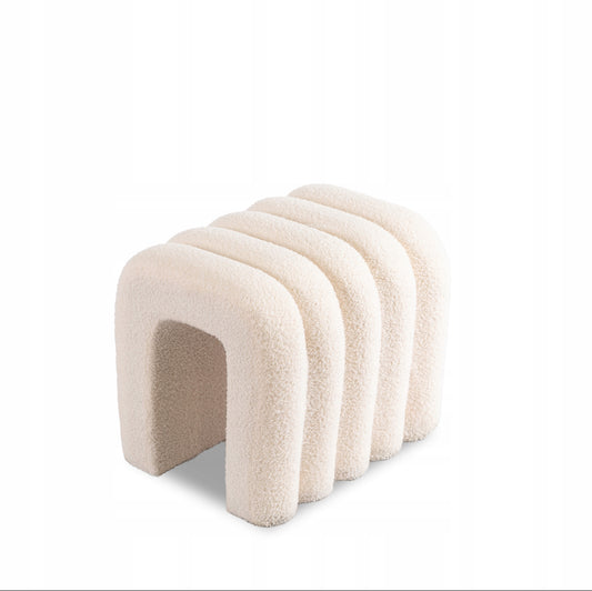 Bouclé Puff Med Bølget Design Til Stue Og Soverom