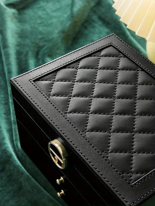 Smykkeskrin i Sort PU Skinn med Lås og Flere Rom
