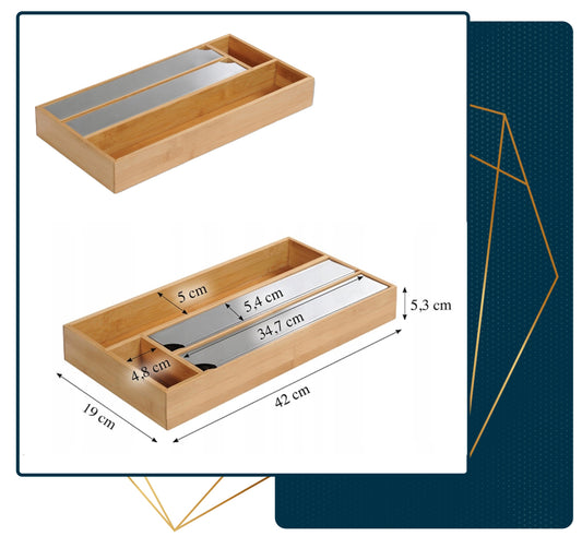 Bambus Kjøkkenorganizer Med 4 Rom For Folie Og Papir