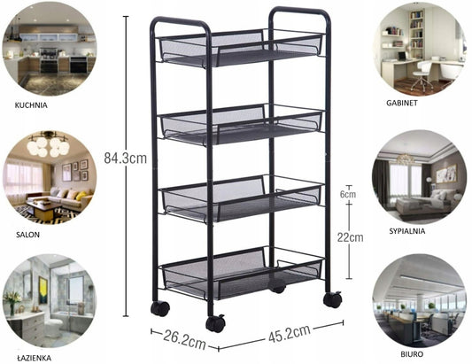 Stabil og mobil organiseringsvogn med 4 kurver – Svart, 85 cm