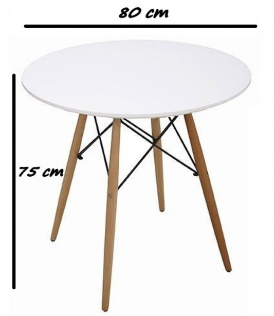 SPISEBORD MED 2 HVITE STOLER I ØKOLOGISK SKINN – MODERNE DESIGN, RUNDT BORD 80 CM