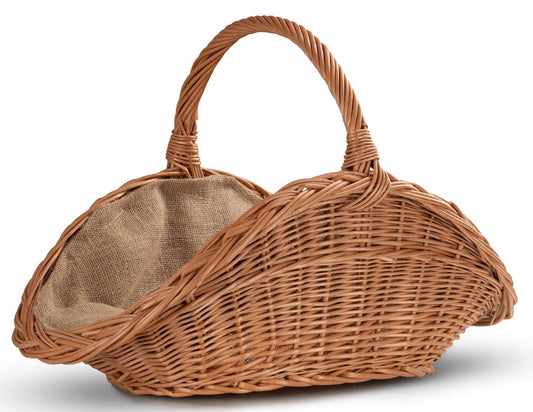 Stor Håndlaget Kurv i Naturlig Flettet Pil med Jutefôr