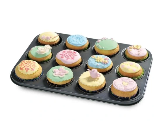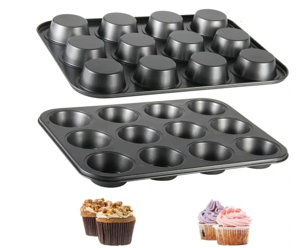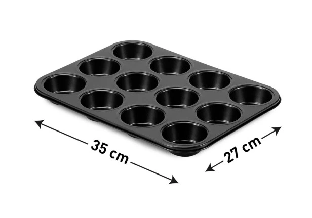 ⭐12 HUL - platen har 12 hull tilpasset for baking av muffins. Materialet som brukes til produksjon sikrer jevn oppvarming av retten , takket være at deigen er godt bakt og sprø. Ikke-klebende bakevarer er garantert.