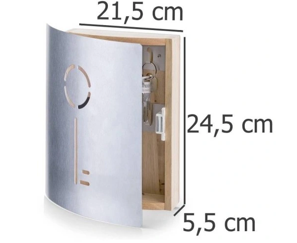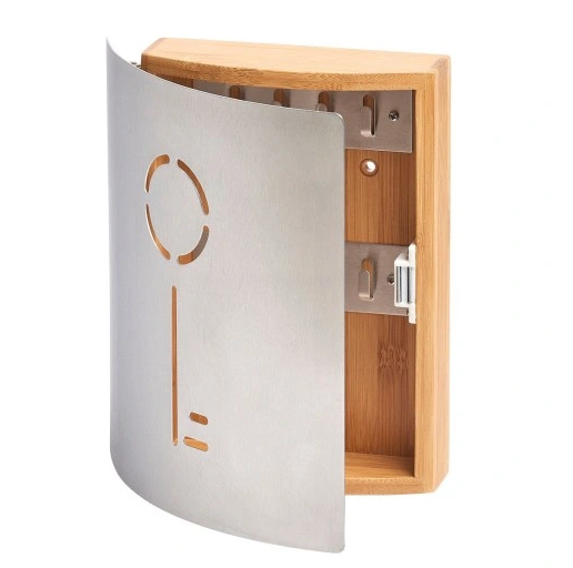 Laget av gummitre og rustfritt stål , et skap for oppbevaring av nøkler og andre småting. Det vil fungere i hallen så vel som i garasjen, kjelleren eller annet vaskerom. Det vil beskytte innholdet mot støv og bidra til å holde ting ryddig.