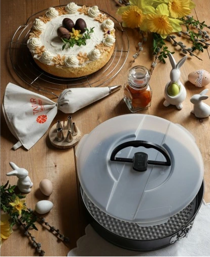 - Den runde formen med klips og non-stick belegg vil lette tilberedningen av kaker